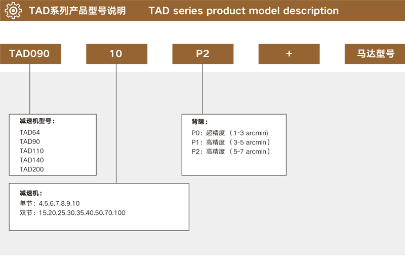 規格 Specification | 單位 Unit | 節數Stage | 減速比Ratio | TAD064 | TAD090 | TAD110 | TAD140 | TAD200 |