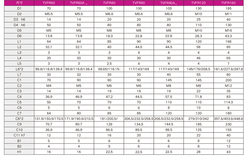 TVFR系列性能參數表 / TVFR Series Performance Table | ||||||||