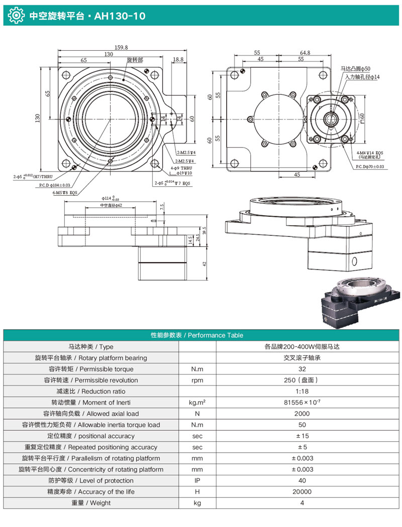 無齒隙,定位精度≤15sec,重復定位精度可達±5sec